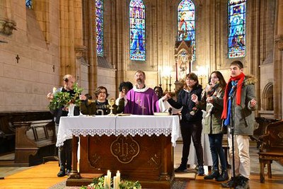 La messe peut continuer...La fraternité est au rendez-vous: déjà le sourire de Sarah a conquis toute l'assemblée.