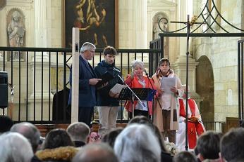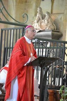 Les textes de la Parole de Dieu étaient appropriés, puisqu'ils invitaient tous les chrétiens à imiter le Christ pour faire de l'Eglise une "Eglise-servante". C'est un signe de contradiction à porter dans le monde, selon l'inspiration de l'Esprit Saint et pour le bien des hommes. Mgr Giraud donnait un exemple de sa vie: quand il aime porter le plateau d'apéritif lors d'une rencontre festive, on lui objecte qu'il devrait laisser faire; mais ce n'est pas l'idée du Christ ni son appel!
