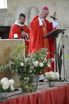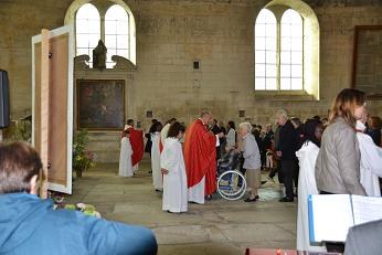 A 10H00, la célébration commençait, ouverte par Charles portant la croix de procession, suivi des jeunes et Mgr Giraud.