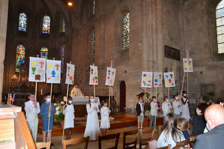 Après une année sans ... voilà qu'ils étaient 10 enfants à nous réunir en Eglise dans la fête de leur première communion, en ces fête plus large du "St Sacrement du Corps et du sang du Christ". Parmi eux, Louisa, venue de Bavière, pour partager ce moment en famille chez ses grands parents. Quel partage, donc!