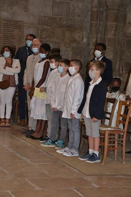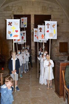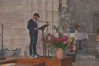 Les Jeunes de l'aumônerie avaient pris soin de préparer un mot d'encouragement, et tout autant de témoignage de leur expérience comme d'avertissement à ne pas s'habituer à la communion et à rester toujours nouveau devant cet acte...