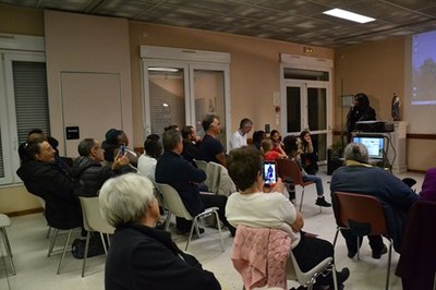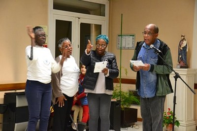 Puis, pour mieux connaître les oeuvres de la Mission Universelle, à travers un "Kahoot" où les participants se regroupaient autour d'un téléphone portable... et concouraient au quiz sur la Mission universelle, ses 4 composantes, son histoire et ses buts.