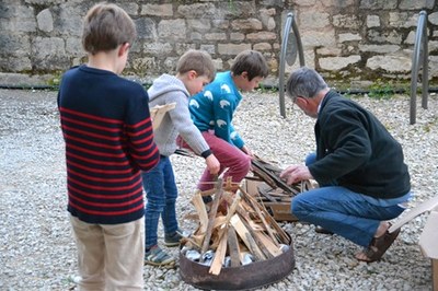 C'est ainsi que les fêtes ont débuté avec le coucher du soleil, sur le terre plein de l'église St Pierre. Des "lutins" s'activaient pour préparer le feu pascal.