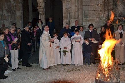 Le feu s'élevait accompagné du chant "Christ est lumière", scandé dans la nuit... et l'assemblée suivait le Cierge pascal dans l'église... pour l'annonce de l'évenement pascal "Exultez de joie, vous les anges, serviteurs de Dieu...Sonnez la victoire...."