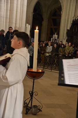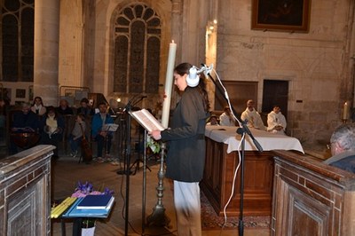 Dans la nuit, la Parole de Dieu nous racontait l'aventure du Peuple de Dieu..., son histoire d'alliance: le sacrifice d'Isaac, la traversée vers la liberté d'une Terre promise, la promesse de la grâce de Dieu par les prophètes...