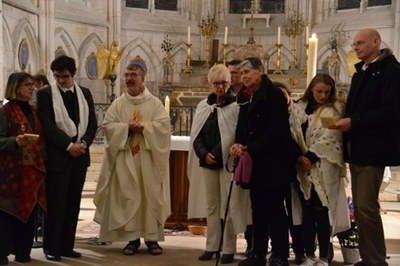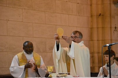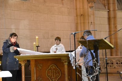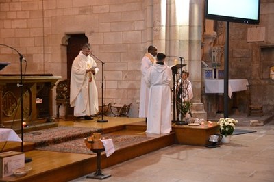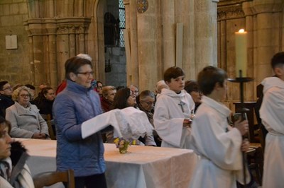 La procession des offrandes nommait nos trois paroisses à travers ce que chacune d'elles apportait... nappe, pain, vin...