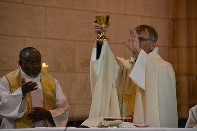 L'eucharistie s'éleva dans l'église illuminée et joyeuse, pour cette grâce des ces moments heureux dans notre monde agité.