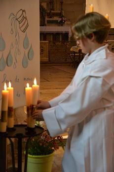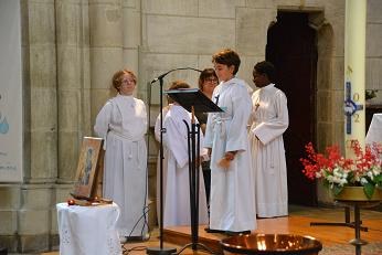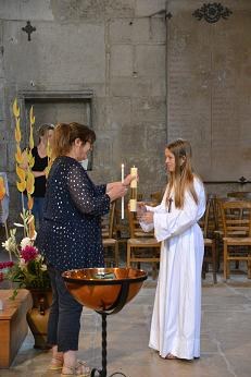 les jeunes venaient se saisir du cierge de leur baptême pour proclamer leur foi, un texte écrit à partir des éléments qu'ils avaient eux-même donnés, lors de la retraite.