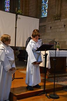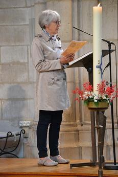 Après l'accueil, nous pouvions écouter la parole de Dieu, textes puisées dans les propositions liturgiques de cette veille de Pentecôte. Une catéchiste, Christiane, lisait...