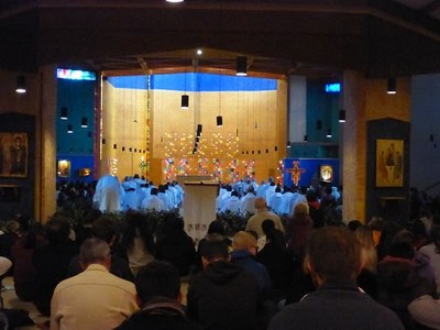 Il est 12H30, … nous nous joignons dans le silence, malgré le nombre des pèlerins, à l’office du milieu du jour, … quelques refrains, une parole de Dieu, une intercession… et beaucoup de temps de silence…