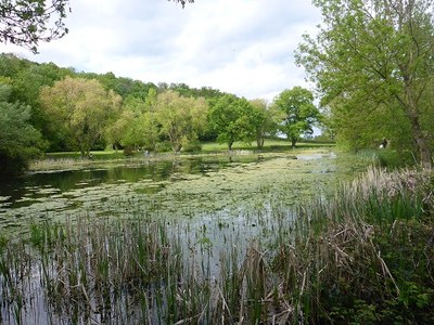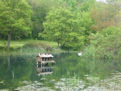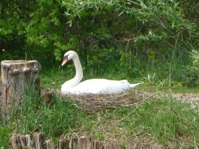Puis, nous partons vers la « source », un lieu verdoyant qui permet à une personne de se « retirer » de la foule, de méditer, de se fondre dans la nature et en Dieu. Là près de l’étang, un cygne avait fait son nid… et pondu quelques « œufs de Pâques »…, signe de la vie nouvelle.