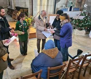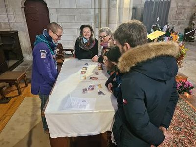 Puis les participants (scouts et paroissiens) pouvaient choisir dans un photolangage une évocation de la paix et s'en expliquer.