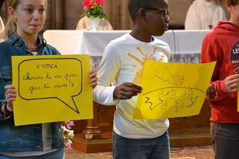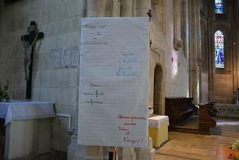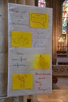 L'homélie commencera par une animation: les 6° lisent les paroles du panneau (inspirées de l'Evangile) et affichent un dessin qui illustre la parole: