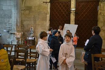 De bon matin, les enfants du caté convergeaient vers l'église ND, pour ouvrir le temps de l'Avent, en se préparant et en confectionnant de quoi animer la messe des familles.