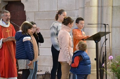 4 – Notre communauté paroissiale se réunit comme chaque dimanche… Mais nous avons aussi la chance d’avoir un évêque, Pascal WINTZER qui nous rassemble de temps en temps et plus largement, sur le Diocèse.Merci, Seigneur, de nous enrichir les uns les autres, de pouvoir nous imaginer chrétiens plus nombreux et plus forts, que sur notre Paroisse un peu limitée. Toi, Seigneur, tu vois toujours grand pour nous faire grandir.