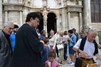C'est ainsi que l'église St Pierre se garnit pour la messe de 11H00... rendant à ces lieux sa dimension cultuelle..., alors que le reste de l'année, ce sont plutôt les touristes (grâce à l'action de l'association St Pierre) et les mélomanes qui la fréquentent.