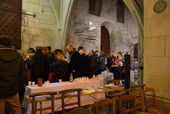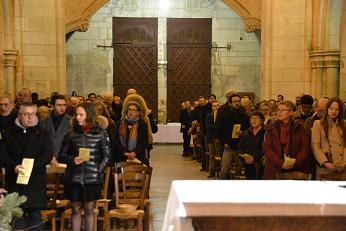 Vers 21H00 après une première veillée composée de poèmes, de chants et d'images, et de musiques, la célébration pouvait commencer avec une assemblée de gens venus de partout, comme nos paroissiens pouvaient être ailleurs, en famille. Il ne restait que quelques chrétiens tonnerrois, tels les bergers, pour accueillir tout le monde.