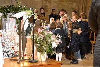 Dans le mouvement de cet Evangile, nous chantions avec les anges des campagnes tonnerroises, pendant que l'enfant Jésus était joyeusement apporté à la crèche, accompagné des enfants,... et des clochettes et grelots en tout genre, dans un heureux tintamarre.