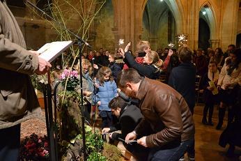 Puis nous pouvions célébrer une offrande de Dieu jusqu'au bout, "de la crèche au crucifiement". Avant de finir en chantant "qu'il est né le divin enfant"... et en allumant quelque cierges magiques... appel à porter la lumière de Noël dans ce monde.