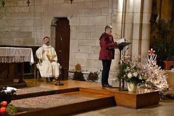 La Procession d'ouverture nous fit accueillir le lectionnaire, la "Parole de Dieu".... qui prit chair dans l'écoute des textes d'Isaïe, du psaume 95 et de Tite... avant que résonne la bonne nouvelle-mémoire du premier Noël.