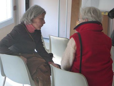 Vers 14H30 l'après midi s'ouvrait dans une rencontre, faite d'un exposé de Rosina (traduit judicieusement et de manière fluide par Emeline), soutenu par diaporama; le tout suivi d'échanges...Un menu aussi nourrissant que le repas qui précédait.