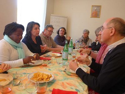 Vers 12H30, un grand repas rassemblait autour de Rosina et de notre évêque... sympathisants du CCFD et membre de l'EAP de Tonnerre.