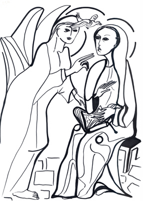 Après avoir prié ensemble, le Père Lhoste nous a proposé une méditation sur l’évangile du jour : l’Annonciation (Luc 1,26-38). Il a commencé par expliquer que, pendant la Semaine Sainte et la 1ere semaine de Pâques, les fêtes liturgiques sont reportées. La fête de l’Annonciation, 25 mars, a donc été reportée au 9 avril. La méditation nous montre la grandeur du projet de Dieu et l’humilité confiante de Marie. Le Père Lhoste a rappelé que cette fête de l’Annonciation n’est pas une simple fête de la Vierge, mais d’abord une fête du Seigneur, de l’annonce de son incarnation.