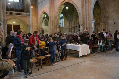 Toute l'assemblée lève alors son cierge à la gloire de Dieu... pour ses bontés, de siècles en siècles, et d'abord en Jésus.