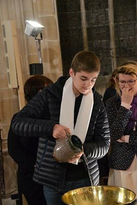 En mémoire des derniers gestes de Jésus, le lavement des pieds était proposé aux catéchumènes et à quelques membres de leurs équipes d'accompagnement.