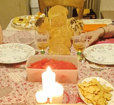Emeline nous a spécialement préparé un pain à l'effigie de la croix de Saint Benoît!