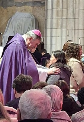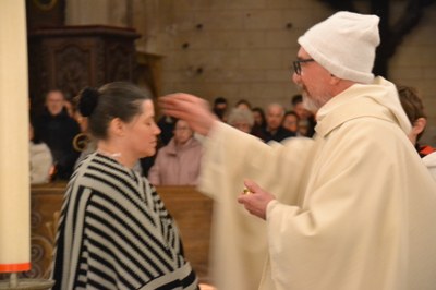 Toucy, Dimanche 22 février 2026, 1er dimanche de Carême : grand rendez-vous des catéchumènes du diocèse, adultes et ados, pour vivre l’appel décisif. Nous sommes une centaine, entourés de la Communauté paroissiale de Toucy, de nos accompagnateurs et accompagnatrices, de nos parrains et marraines. Au cours de la messe, chaque catéchumène est appelé « officiellement » par Monseigneur Wintzer, notre Evêque. Je suis reconnue digne de recevoir les sacrements du Baptême, de l’Eucharistie et de la Confirmation et appelée à une nouvelle naissance. Je reçois une écharpe violette. Je n’ai plus peur et une grande paix et une grande joie intérieures m’envahissent.