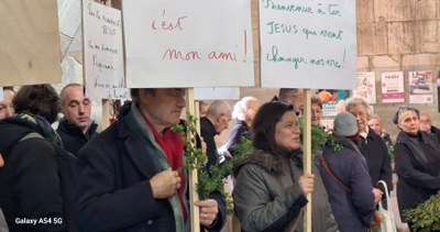 Le dimanche des Rameaux, avec mon parrain et d’autres catéchumènes, nous faisons la procession : des phrases présentées sur des panneaux disent qui est Jésus pour nous. « Jésus est Celui qui me rappelle que l’amour est le plus important. » « Jésus me montre le chemin ; il nous guide par sa Parole. » « Par sa Résurrection, il nous donne l’espérance d’une vie au-delà de la mort. » « Jésus est le pilier sur lequel s’appuyer. »