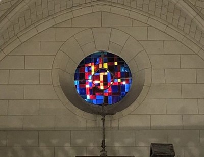 ... l'Oculus de 1m40 de diamètre situé au balcon au-dessus du portail principal de l'église, date également de 1957-58
