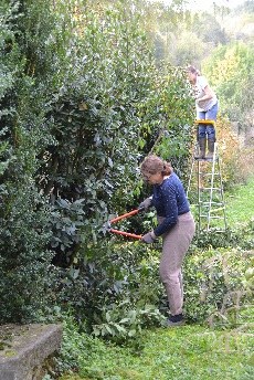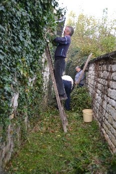 Puis chacun s'affairait, qui à détacher le lierre, qui à piocher les plates-bandes,...ou à tronçonner....