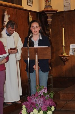 La prière universelle faisait prier pour les Jeunes qui ont à aller sur le chemin de "parcours sup", pour que le cheminement vers la Paix se fasse en Ukraine et ailleurs, pour que se lèvent des hommes de partage dans ce monde, à l'image des diacres de la première communauté et pour ceux qui s'avancent sur le chemin de la Confirmation.... le 29 Mai...