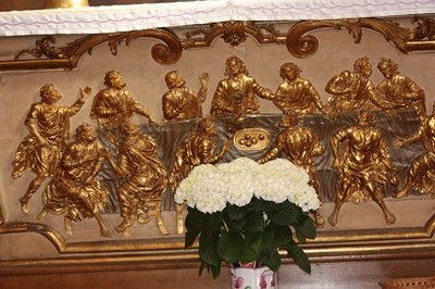 L'autel figurait, en ce temps de Pâques, la Cène dont nous allions faire mémoire. Tout est prêt