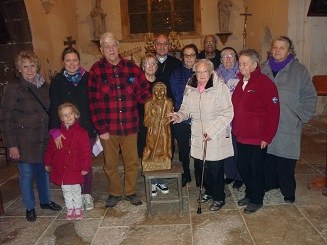 Puis découverte de l’étendue du territoire de la paroisse en empruntant de petites routes et avec visite de huit églises, pour enfin arriver à Etivey où une vingtaine de personnes nous attendait pour la célébration des vêpres et la bénédiction de la statue de Saint Phal, patron de l’église. Statue en bois de chêne sculptée par un artiste de la commune : Edouard Lequesne.