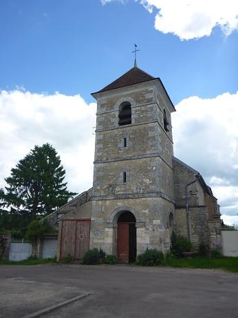 L’église remonte à la période de transition, c'est-à-dire au XIIème siècle. Le portail est flanqué de deux colonnettes accompagnant les pieds droits, dont les chapiteaux cubiques supportent un entablement. Le tympan en pierre est orné d’une statuette debout sous une double archivolte à voussures.